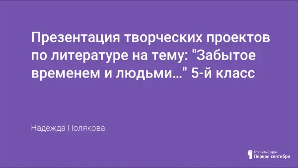Урок-представление двух творческих проектов, разработанных учащимися 5-го класса и посвященных совершенно разным темам, но объединенных одной мыслью: "Забытое временем и людьми...".