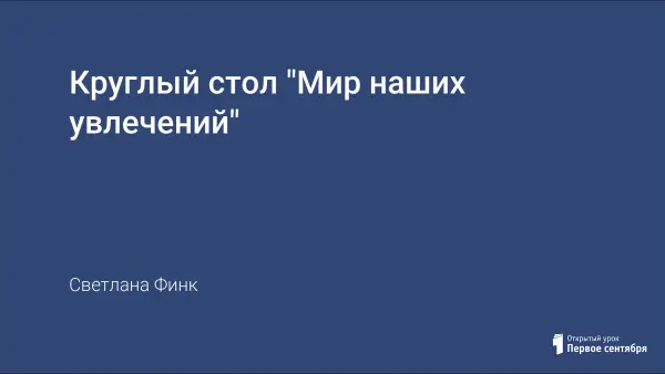 Открытый урок английского языка в 7-м классе составлен на основании учебника Афанасьевой О.В., Михеевой И.В. Работа на уроке направлена на развитие речевых навыков учащихся. Задания, представленные на уроке, призваны обеспечить умение и желание учащихся практически применять свои знания в естественных ситуациях общения, активизировать мыслительную деятельность. Урок является обобщающим, проводится в виде дискуссии за "круглым столом", с использованием элементов проектной методики (презентация увлечений).