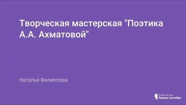 Творческая мастерская проводится с целью развития представления о поэтике А.Ахматовой, особенностей творчества поэта, подготовки к восприятию гражданской лирики и поэмы «Реквием».