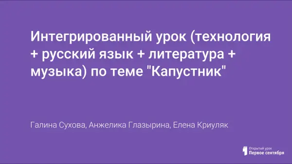 Интегрированный урок "Капустник" разработан для учащихся 6-х классов. Урок освоения практических навыков квашения капусты, закрепления материала по теме "Календарно-обрядовый фольклор". Обращение к старинным русским обрядам, национальным традициям превратили урок в праздник.