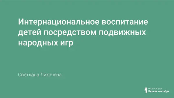 Интернациональное воспитание детей, хоть и является частью патриотического, несет в себе все же особую смысловую нагрузку и должно быть выделено, на мой взгляд, из общего ряда содержательных ориентиров воспитания. Здесь на помощь педагогу приходит подвижная народная игра как одно из средств интернационального воспитания детей.
