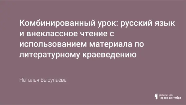 Комбинированный урок, литературного краеведения и русского языка, формирует в детях чувство любви к Родине, развивает познавательный интерес, способствует более полному восприятию художественной литературы.