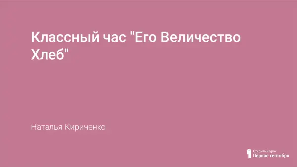 Классный час на базе нескольких мероприятий учит детей ценить и беречь хлеб. Рассказывается о труде, необходимом для получения хлеба, о его роли в истории человечества, о голоде и блокаде Ленинграда. Мероприятие сопровождается посещением Зала Боевой Славы, встречей с блокадницей, конкурсом стихов, рисунков, сочинений на тематику хлеба.