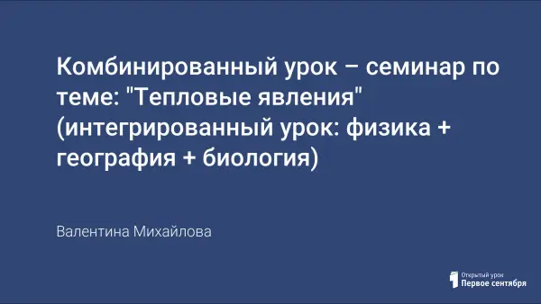 Комбинированный урок – семинар по теме: "Тепловые явления" (интегрированный урок: физика + география + биология)