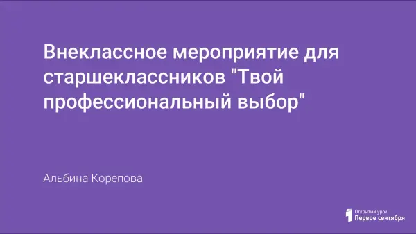 Занятие для старшеклассников 9–11-х классов призвано оказать помощь будущим выпускникам в приобретение знаний по основам выбора профессии в профильном экономическом классе. Развить способность правильной самооценки, реализовать свои возможности, развивать коммуникативные качества личности и углубить знания о разных профессиях.