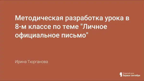 Методическая разработка урока по риторике в 8-м классе по материалу главы «Личное официальное письмо» из учебного пособия «Школьная риторика» для 8-го класса под редакцией Т.А. Ладыженской.