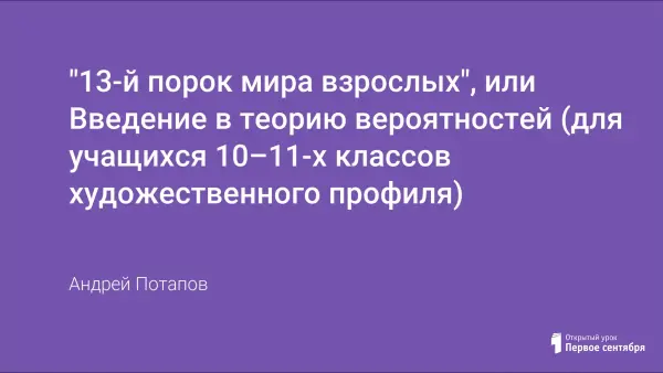 "13-й порок мира взрослых", или Введение в теорию вероятностей (для учащихся 10–11-х классов художественного профиля)