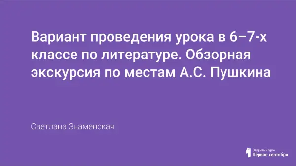 Разрабатывая урок-экскурсию на тему «Пушкинские места в России», я хотела привлечь внимание учащихся не только к произведениям А.С. Пушкина, но и к тем местам, в которых создавались эти произведения.