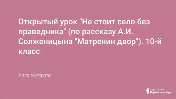 Урок-аналитическая беседа в 10-м классе "Не стоит село без праведника" по рассказу А.И. Солженицына "Матренин двор".