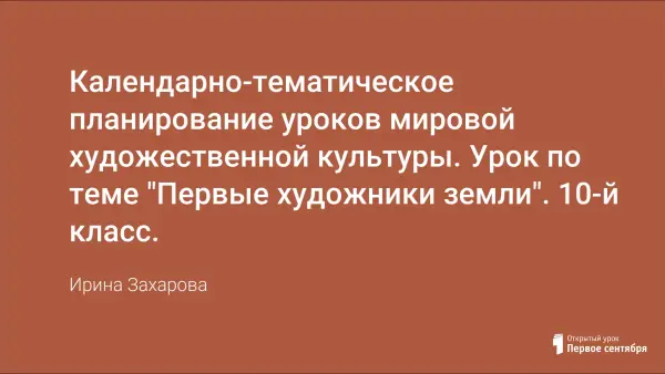 Календарно-тематическое планирование разработано в соответствии с программой по "Мировой художественной культуре". Отличительной особенностью календарно-тематического планирования является попытка синтезирования знаний учащихся, полученных при изучении других дисциплин, создания целостного представления о мировой культуре как системе общечеловеческих ценностей.