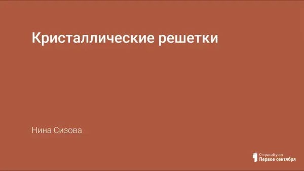 Урок проводится с использованием презентации. Целью урока является дать понятие о кристаллическом и аморфном состоянии твердых веществ; познакомиться с типами кристаллических решеток, с видами химической связи и влиянием на физические свойства веществ; дать представление о законе постоянства состава веществ.