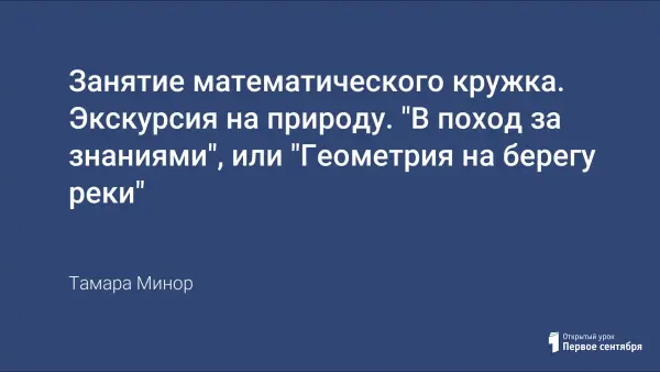 Занятие математического кружка "В поход за знаниями" проходит на берегу реки. Ребята учатся определять высоту предмета по его тени, используя основное свойство пропорции и свойства равнобедренного треугольника, учатся определять ширину реки в походной обстановке. Занятие спланировано с использованием элементов модульной технологии и с экологической тематикой.