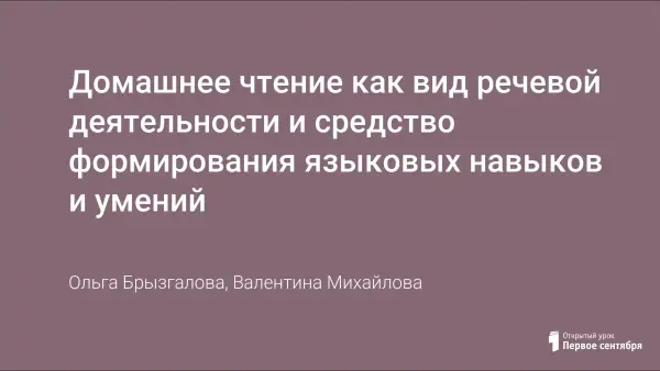 Домашнее чтение как вид речевой деятельности и средство формирования языковых навыков и умений