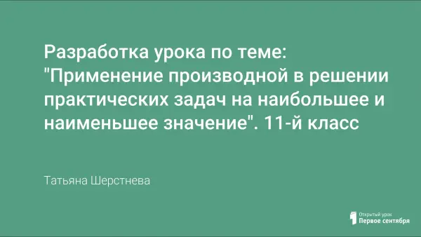 Урок обобщения и систематизации знаний для учащихся 11-х классов по теме "Применение производной в решении практических задач на наибольшее и наименьшее значение".
