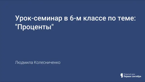 В этой работе дана разработка открытого урока-семенара, целью которого было обобщить и систематизировать знания учащихся по теме "Проценты". Урок, проведенный в форме соревнований между тремя командами, охватывает большой теоретический материал, часто выходящий за рамки школьного учебника. Урок содержит много игровых моментов и исторических сведений.
