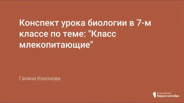 Урок по теме "Класс млекопитающие" рассказывает о прогрессивных чертах организации животных, позволивших им занять все основные среды обитания; знакомит с общей характеристикой отрядов однопроходных и сумчатых; доказывает необходимость охраны млекопитающих.