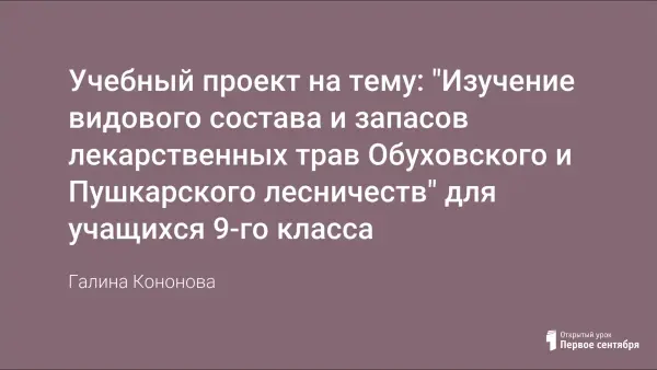 Учебный проект на тему: "Изучение видового состава и запасов лекарственных трав Обуховского и Пушкарского лесничеств" для учащихся 9-го класса