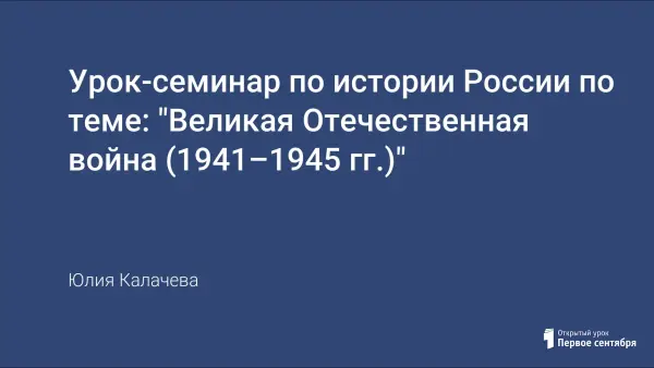 Урок-повторение представляет собой семинар устного типа, опирается на предыдущие знания учащихся о Великой Отечественной войне.
