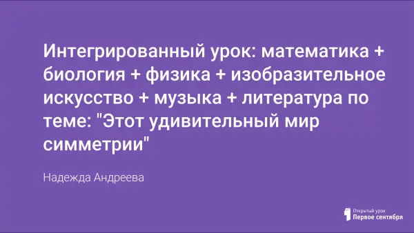 Интегрированный урок: математика + биология + физика + изобразительное искусство + музыка + литература по теме: "Этот удивительный мир симметрии"