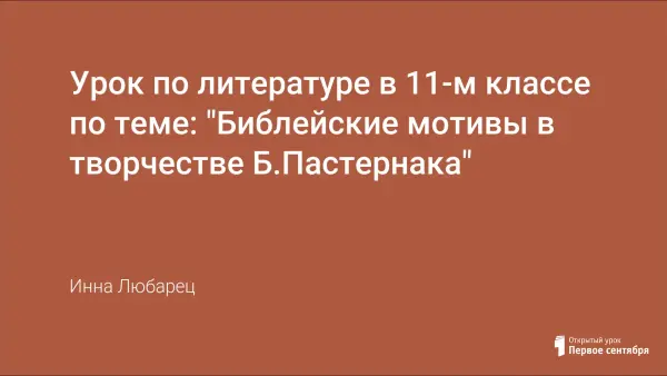 Урок по теме "Библейские мотивы в творчестве Бориса Пастернака" продолжает знакомство с творчеством поэта и расширяет знания учащихся по теме "Нравственное наследие христианства в русской литературе".