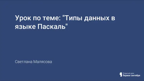 Описываемый урок открывает изучение темы "Типы данных в языке Паскаль". На этом уроке формируются следующие основные типы данных.