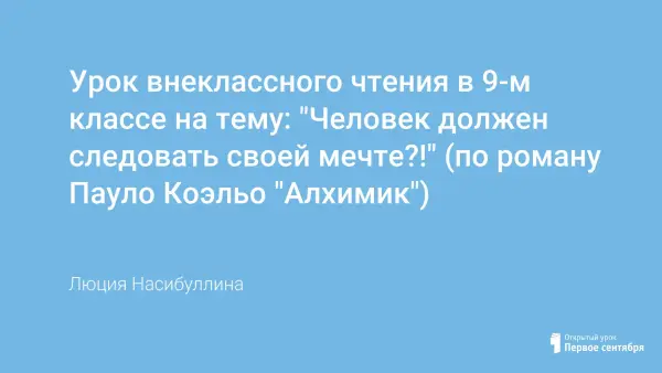 На примере романа П.Коэльо "Алхимик" с учащимися 9-го класса ведется разговор о смысле жизни, о нравственных ценностях.