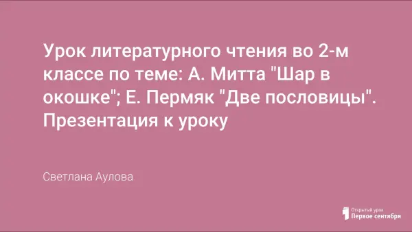 Урок литературного чтения во 2-м классе по теме: А. Митта "Шар в окошке"; Е. Пермяк "Две пословицы". Презентация к уроку