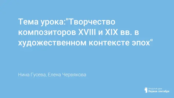 Тема урока:"Творчество композиторов XVIII и XIX вв. в художественном контексте эпох"