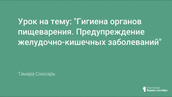 Урок "Гигиена органов пищеварения. Предупреждение желудочно-кишечных инфекций" является обобщающим по теме "Пищеварение". Урок проводится в форме учебного занятия. На уроке используются дополнительные источники знаний: статьи, книги, рисунки.