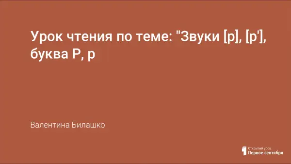 Цель урока – ознакомить детей с новой буквой Р, р, звуками, которые она обозначает: [р], [р], сформировать умение читать слоги и слова с данной буквой, развивать речь детей, воспитывать любовь к природе и труду.