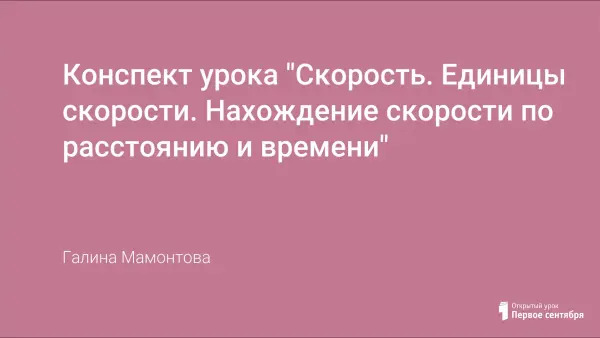 Конспект урока "Скорость. Единицы скорости. Нахождение скорости по расстоянию и времени"