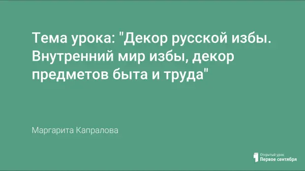 Тема урока: "Декор русской избы. Внутренний мир избы, декор предметов быта и труда"