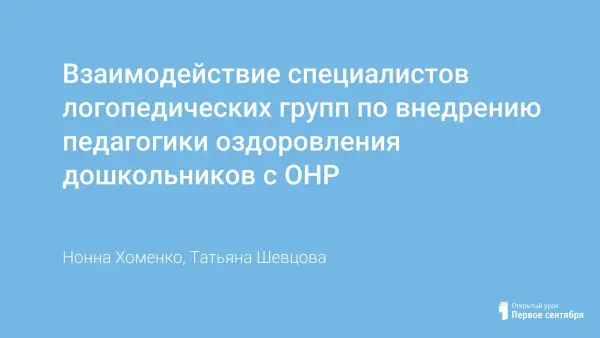 Взаимодействие специалистов логопедических групп по внедрению педагогики оздоровления дошкольников с ОНР
