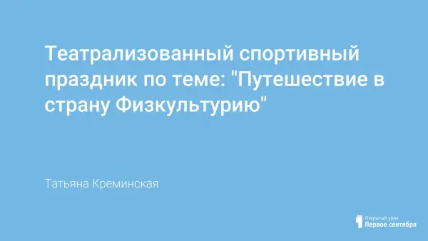 Театрализованный спортивный праздник "Путешествие в страну Физкультурию" разработан для учащихся 5–6-х классов. Он сочетает в себе совместное сотрудничество взрослых и детей. Чередование командных конкурсов с творческими выступлениями позволяет удерживать внимание зрителей на высоком уровне, вызвать у аудитории познавательный интерес к занятиям физкультурой. Увлекательная игровая форма способствует закреплению двигательных умений и навыков, развитию физических качеств, необходимых в дальнейшей жизни.