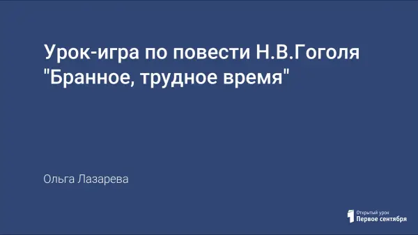 Представлена презентация к уроке-игре по повести Н.В.Гоголя «Тарас Бульба».