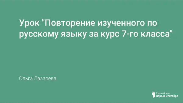 Представлена презентация к уроку повторения изученного по русскому языку за курс 7-го класса.