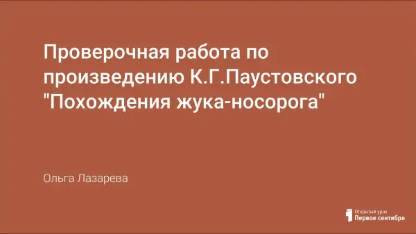 Представлены вопросы к проверочной работе по произведению К.Г.Паустовского "Похождения жука-носорога".