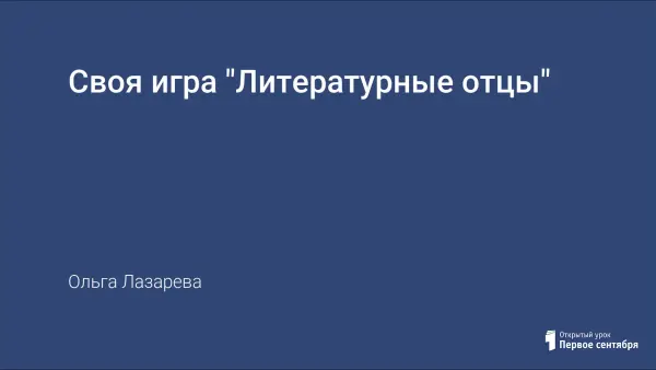 Своя игра по теме "Литературные отцы" оформлена в форме презентации.