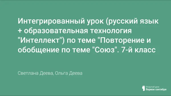 Интегрированный урок (русский язык + образовательная технология "Интеллект") по теме "Повторение и обобщение по теме "Союз". 7-й класс
