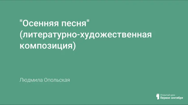 Литературно-художественная композиция знакомит школьников с пейзажной лирикой поэтов ХІХ–ХХ веков, а также с творческими работами самих учащихся, содействует эстетическому воспитанию учеников, помогает вызвать у них интерес к чтению стихотворений о природе, способствует развитию навыков выразительного чтения. Восприятие стихотворений происходит через сопоставление их с произведениями живописи и музыки, воспевающими красоту осенней природы.