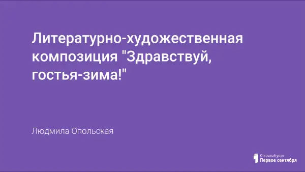 Литературно-художественная композиция из цикла "Времена года в поэзии и живописи" знакомит школьников с пейзажной лирикой поэтов ХІХ–ХХ веков, а также с творческими работами самих учащихся; содействует эстетическому воспитанию учеников, помогает вызвать у них интерес к чтению пейзажной лирики, способствует развитию навыков выразительного чтения. Восприятие стихотворений происходит через сопоставление их с произведениями живописи, воспевающими красоту зимней природы.