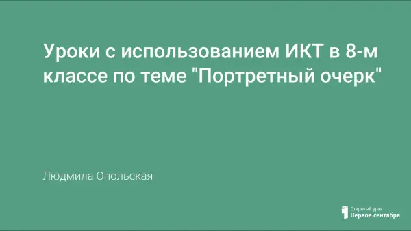 Уроки развития речи в 8-м классе проводятся с использованием презентации Power Point. Время проведения – 3 часа. Цель первого урока: сформировать у школьников общее представление о жанре портретного очерка, его композиции, используемых в нём типах речи и языковых средствах. Два последующих урока посвящены работе над изложением с элементами сочинения (на основе картины Б.М. Кустодиева "Портрет Ф.И. Шаляпина" и фрагмента из очерка В.Липатова).