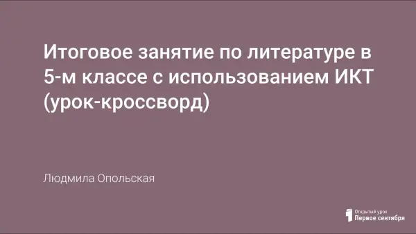 Итоговый урок в 5-м классе, посвящённый обобщению и систематизации изученного, составлен по программе А.Г. Кутузова. Проводятся занятия с использованием презентации PowerPoint. Нетрадиционная форма проведения урока-кроссворда помогает избежать однообразия, обеспечивает интенсивную работу учащихся и позволяет эффективно проконтролировать их знания и умения.