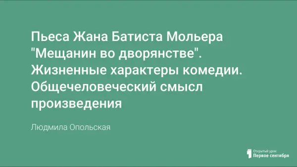 Представлены две объединенные презентации ("Пьеса Жана Батиста Мольера "Мещанин во дворянстве"" и "Словарь урока"). Цель урока: расширение представлений о жанре урока, развитие умения воспринимать текст драматического произведения, характеризовать персонаж.