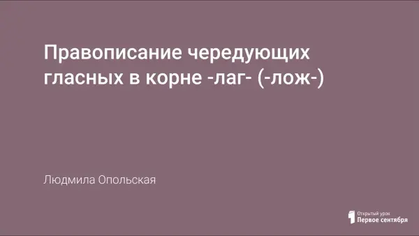 Урок входит в цикл занятий «Правописание корней с чередованием», соответствует требованиям ФГОС. УМК под редакцией С.И. Львовой, проводится с презентацией PowerPoint. Предметные цели — знать правило о написании О-А в корне -лаг- // -лож-, уметь использовать его на письме правило, различать орфограммы «Безударная гласная в корне слова» и «Гласная в корне с чередованием», корни-омофоны.