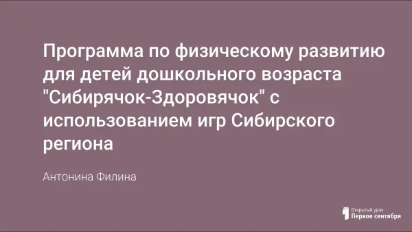 Программа по физическому развитию для детей дошкольного возраста "Сибирячок-Здоровячок" с использованием игр Сибирского региона