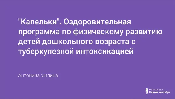 "Капельки". Оздоровительная программа по физическому развитию детей дошкольного возраста с туберкулезной интоксикацией