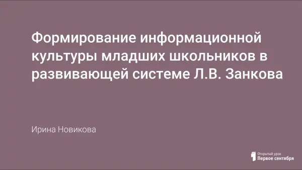 Информационная культура в системе Л.В. Занкова формируется средствами каждого учебного предмета, но приоритетное место в её формировании принадлежит информатике. Включение в учебный процесс УМК по информатике для учащихся 2–4-х классов «Первые шаги в мир информатики» способствует целостному представлению учащихся об информационной картине мире и формированию информационной культуры.
