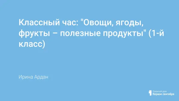 Классный час в 1-м классе систематизирует и расширяет знания детей о здоровом питании, необходимости употребления в пищу овощей, фруктов, ягод и других полезных продуктов; знакомит с витаминами; раскрывает их значение для человека; дает представление о рациональном питании как составной части здорового образа жизни.