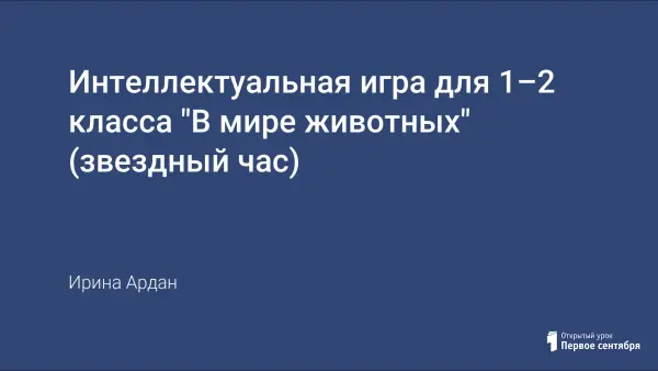 Игра проводится с использованием презентации. Во время игры учащимся демонстрируются слайды с вопросами и варианты ответов. Если участник игры правильно ответил на вопрос – ему дают звезду. По результатом набранных звезд выявляется победитель игры – знаток животного мира нашей планеты.